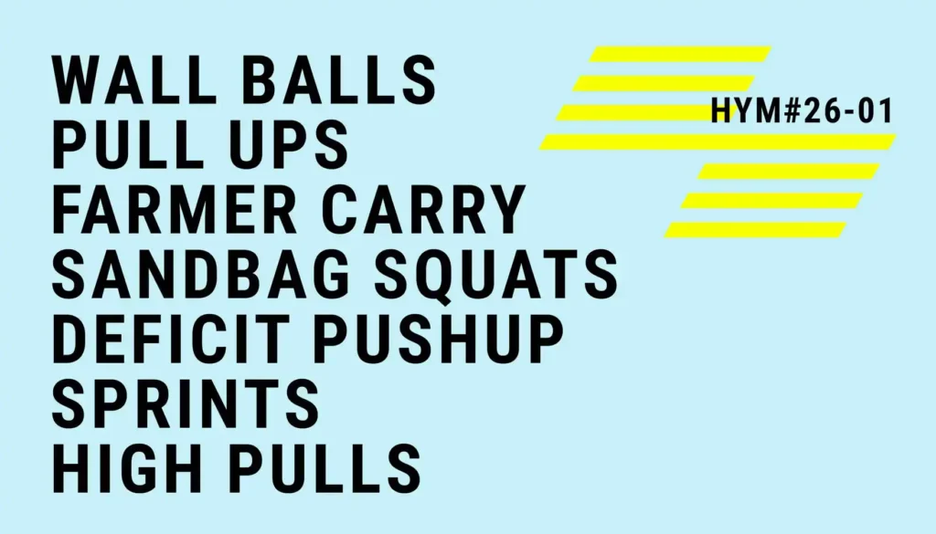 Today’s WOD is built for performance, grit, and raw conditioning. Whether you’re chasing that next HYROX race or just want to push your threshold, HYM #26-01 will light up your lungs and test every muscle in your body. It’s cardio-charged, strength-loaded, and all about controlled intensity.