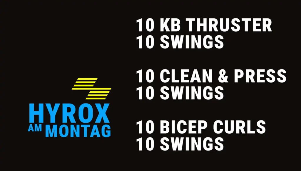 HYROX Am Montag is a straightforward EMOM that delivers maximum intensity with minimal complexity. It’s just three movements—each paired with kettlebell swings—and yet it hits your entire body, minute after minute.