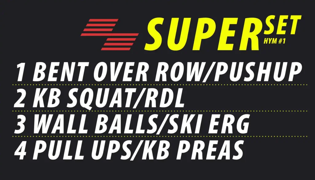 You’ll cycle through each pair in true superset style — strength first, cardio/skill second. Keep rest minimal between movements to mimic real race fatigue and build true hybrid fitness.