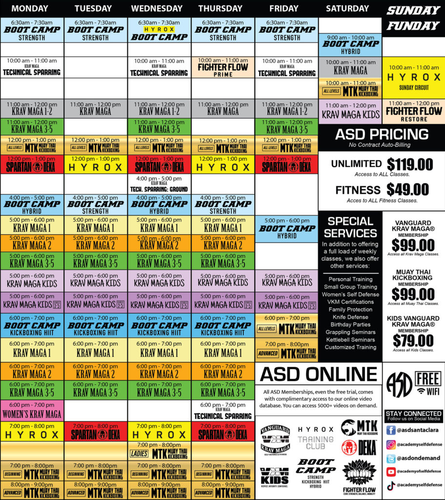 Welcome to Academy of Self Defense (ASD) — Santa Clara’s leading self defense and fitness training center. Whether you’re looking for Krav Maga, Muay Thai Kickboxing, Fitness, Boot Camps, or Martial Arts for Adults & Kids, we have a program designed for you. Our expert instructors, flexible schedule, and proven systems make it easy to start your training, no matter your experience level.